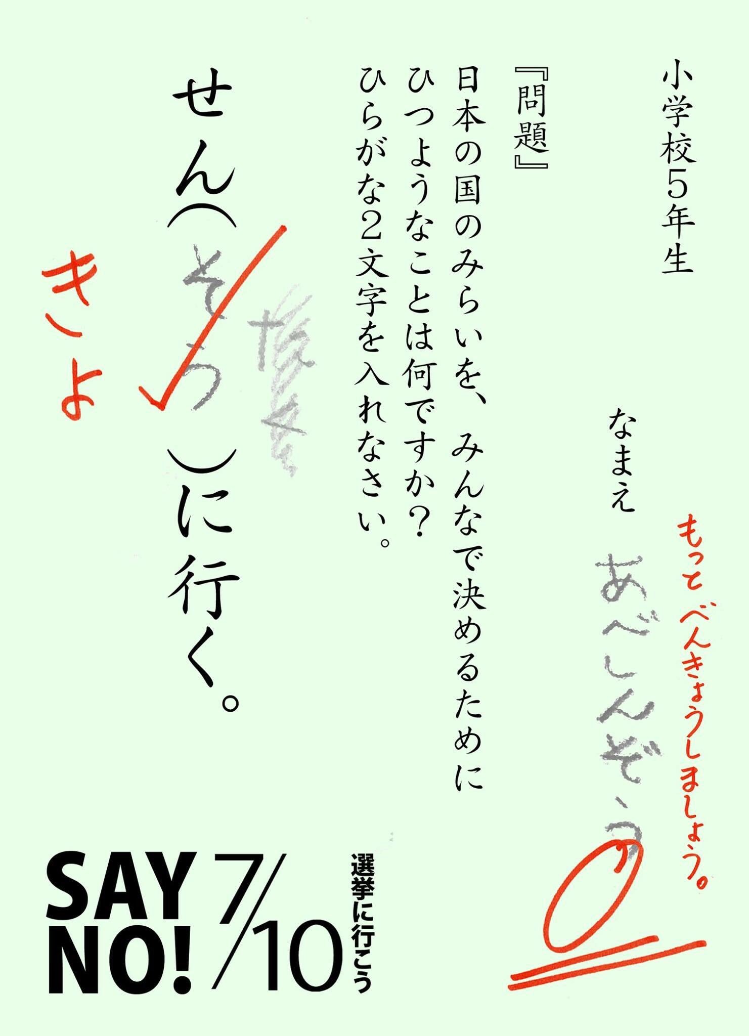「あべしんぞう」が「戦争」と解答したという皮肉ポスター。